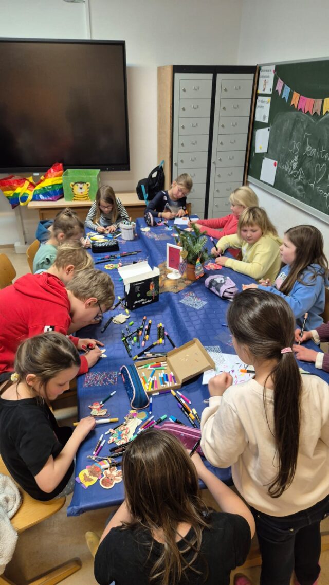 Besonders gefreut haben wir uns über den Besuch der zukünftigen „Ersties“, die gemeinsam mit unseren Schülerinnen und Schülern begeistert geschnippelt, geklebt und gestaltet haben. So entstand nicht nur eine Vielzahl wunderschöner Bastelarbeiten, sondern auch ein erstes Gefühl von Gemeinschaft und Vorfreude auf das kommende Schuljahr. Wir bedanken uns ganz herzlich bei den vielen helfenden Händen, ohne die der Projekttag in dieser Art nicht möglich gewesen wäre.