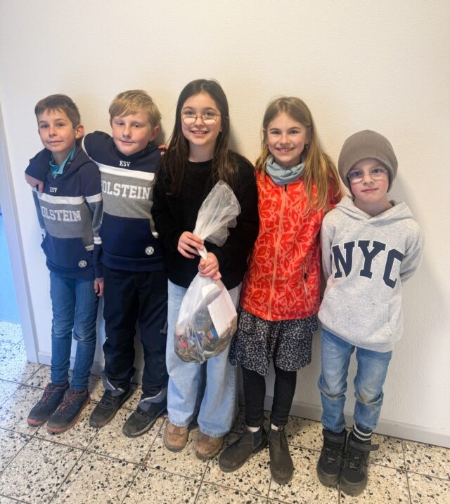 Am Mittwoch haben einige Kinder aus der 3. Klasse aus Blekendorf in der Pause spontan angefangen, Müll auf dem Schulhof zu sammeln – und dabei ist ganz schön viel zusammengekommen.